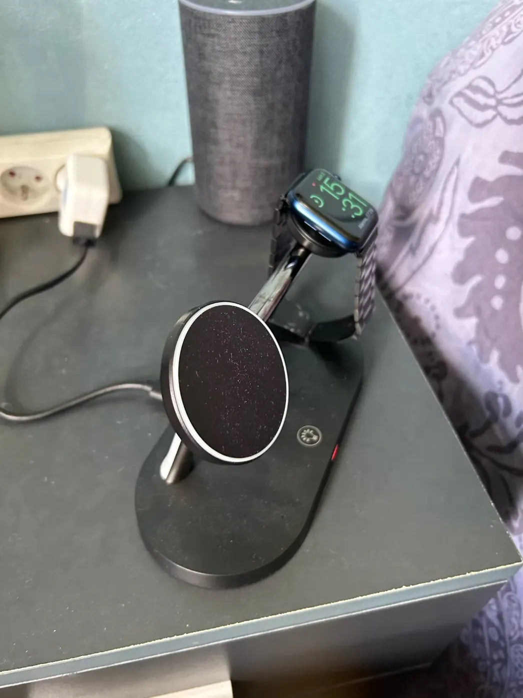 Dieses Ladegerät ist unglaublich. Mein Nachttisch ist jetzt immer organisiert, und das Aufladen meines iPhones, meiner Uhr und meiner AirPods war noch nie einfacher. Dieses Technik-Gadget ist wirklich beeindruckend.